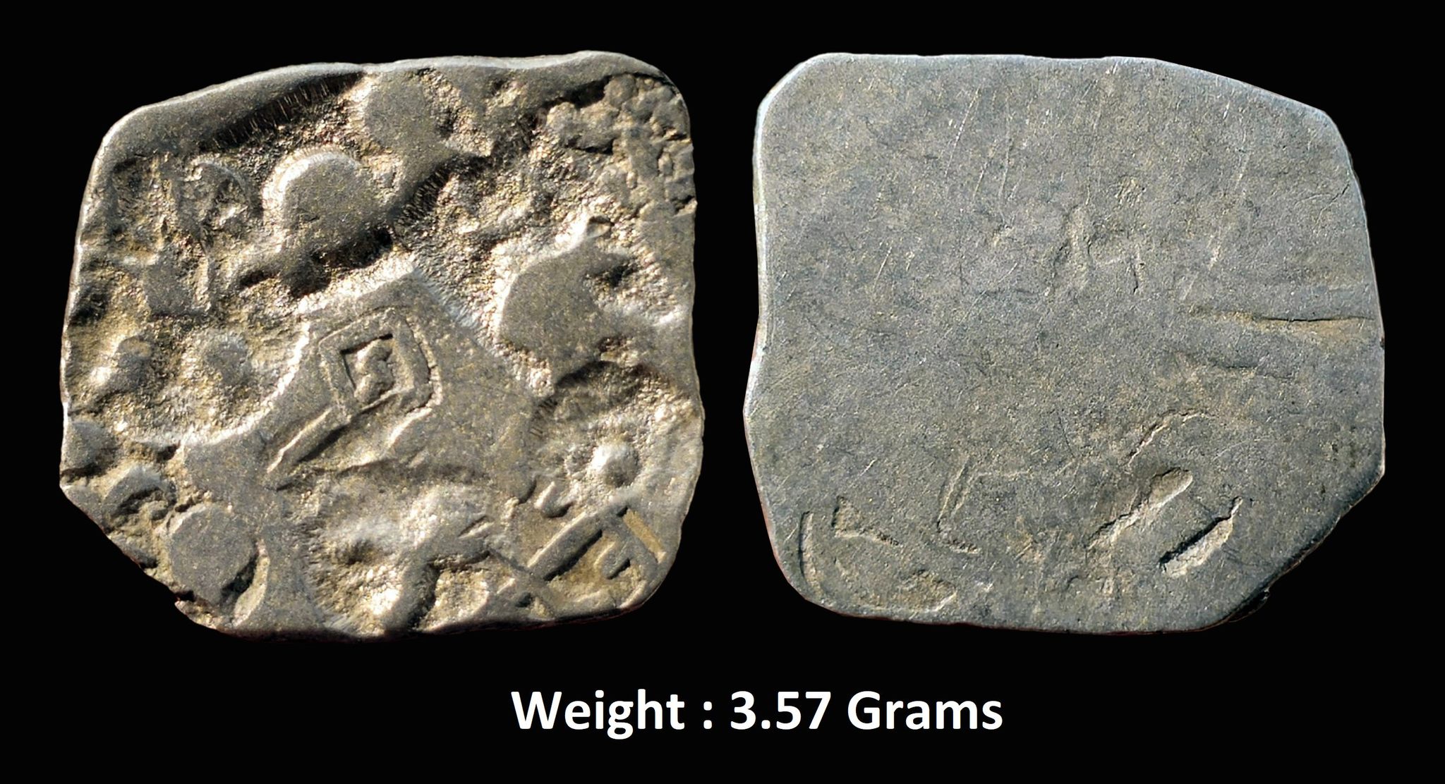 Ancient ; Archaic Punch Marked Coinage ; Attributed to Magadha Janapada ; Silver Karshapana ; Weight : 3.57 Grams