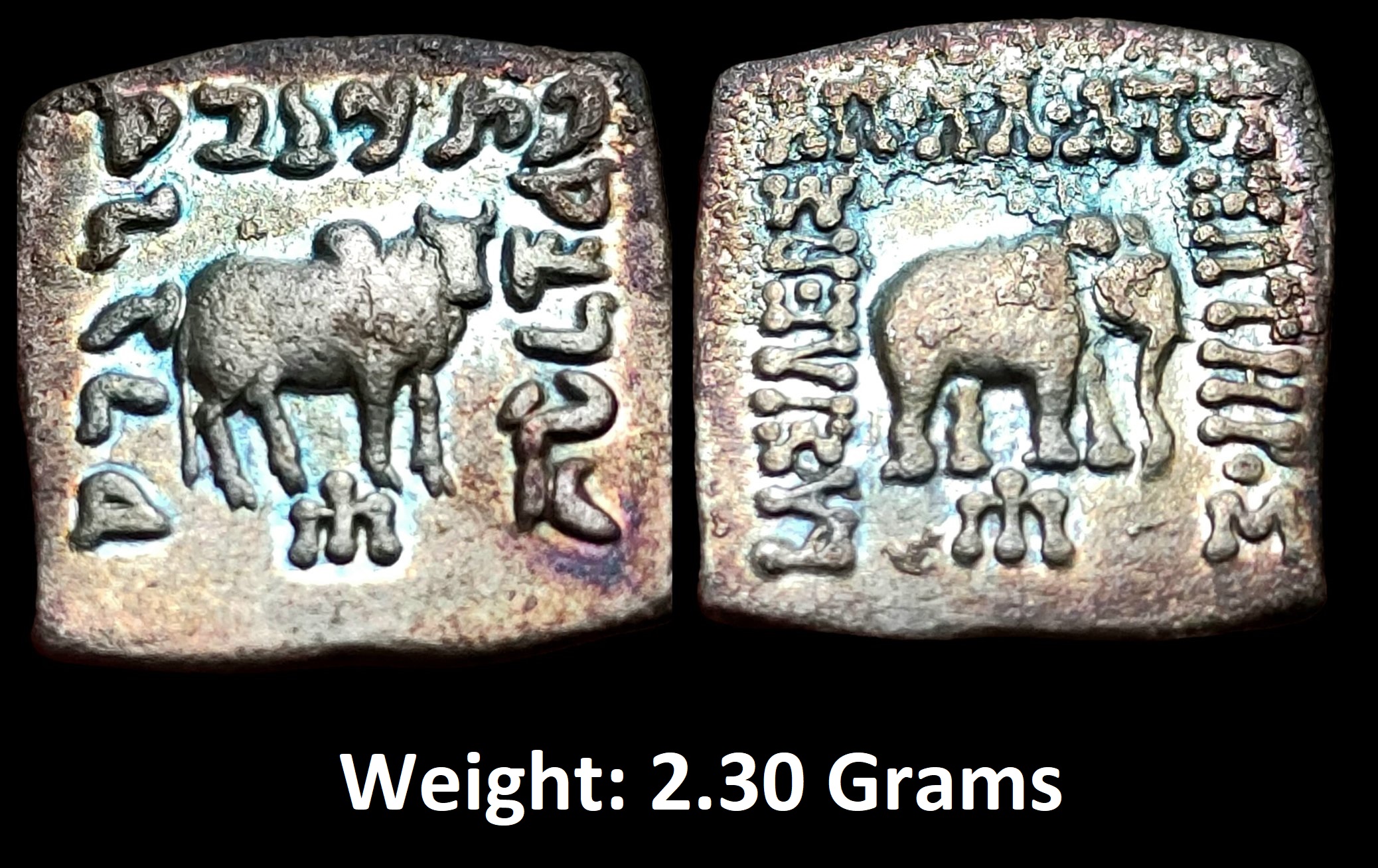 P.S: This was an Indian style & standard coin that replaced the previously unsuccessful round specimen which lacked popularity & ease of acceptance in India locally thus it was withdrawn & these square Drachms were introduced to match up with the coins that were commonly in circulation locally as the Karshapana units which were majorly in square / rectangular shape.