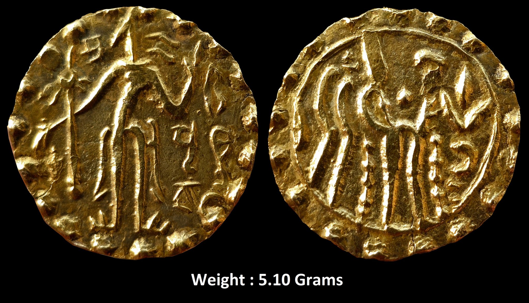 Gold dinar of Rajabhata of Khadga dynasty (c.675-700 AD), ECB SAM16.1,