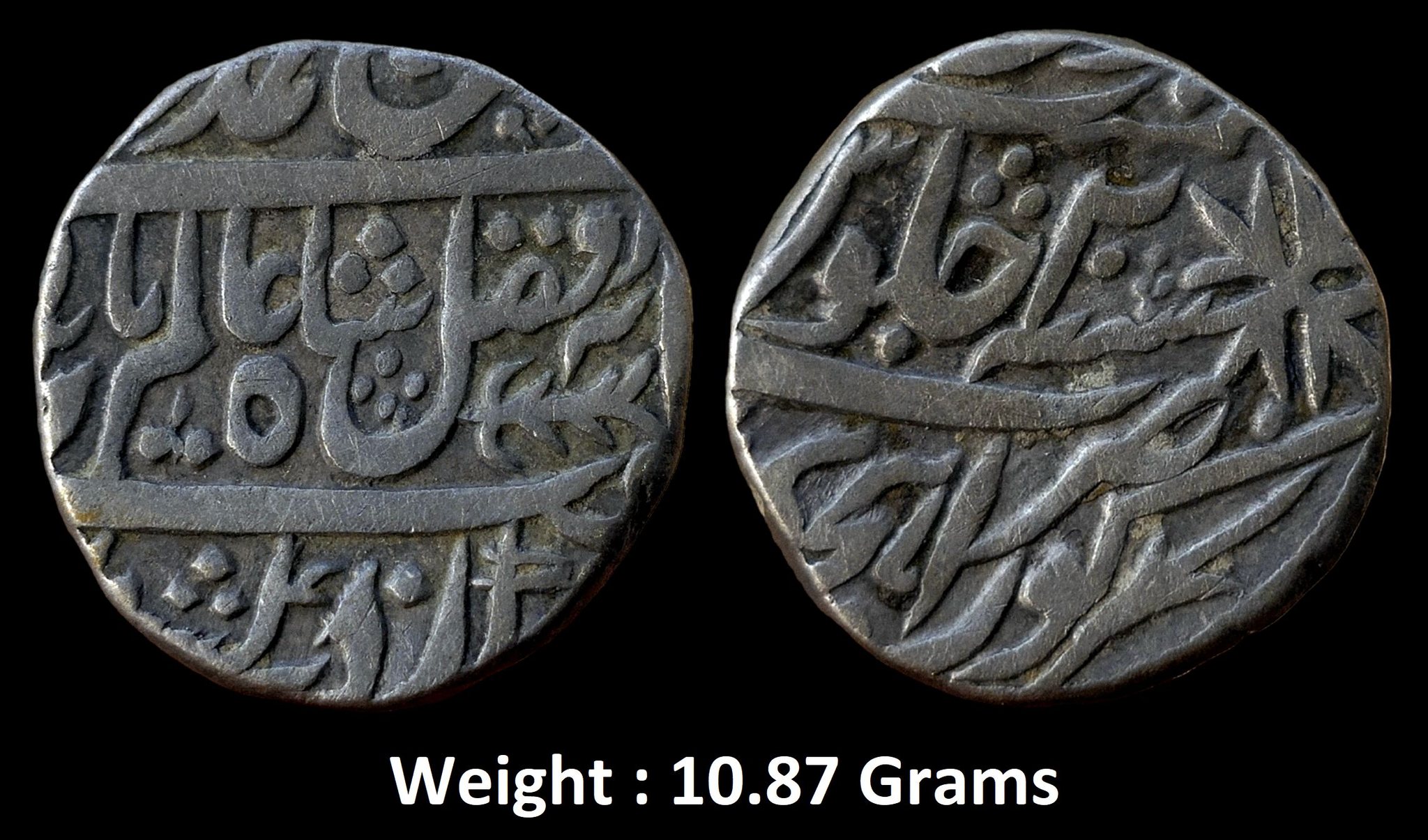 Awadh State ; Asaf-ud-Daula ; Silver Rupee ; Kora Hijri Mint ; INO Shah Alam II ; RY 20 (KM 96. 2) ; Horizontal fish towards left & sword symbol in “Seen” of Jalus ; Weight : 10.87 Grams ;