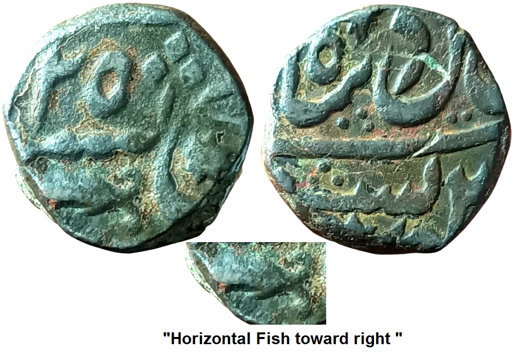 Awadh State ; Copper Paissa ; Issues INO Shah Alam II Horizontal fish towards right ; RY 25 ;