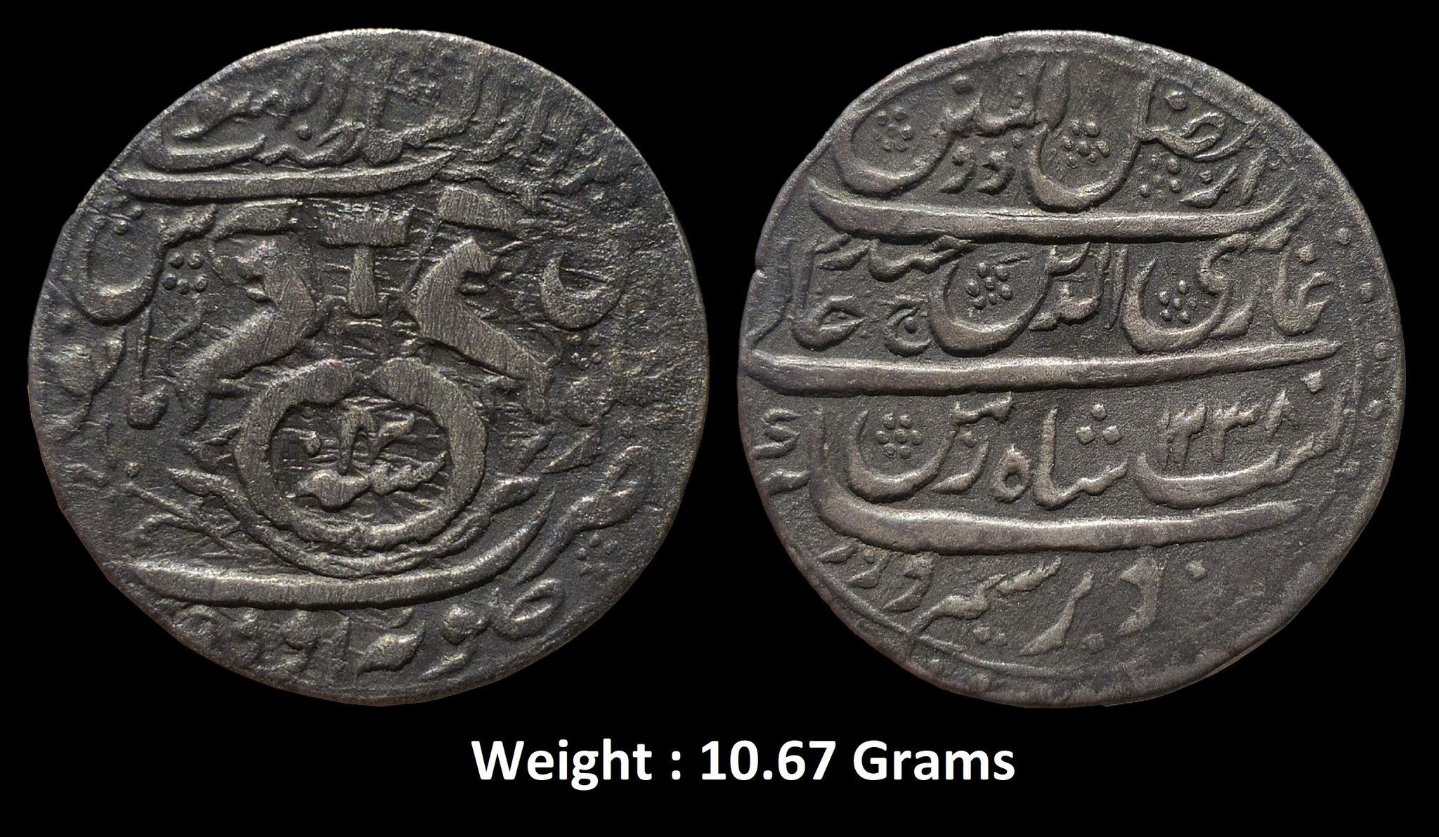Mint : Subah Awadh Daral Sultanat Lakhnau ; 1238 AH / RY 4 ; Weight : 10.67 Grams