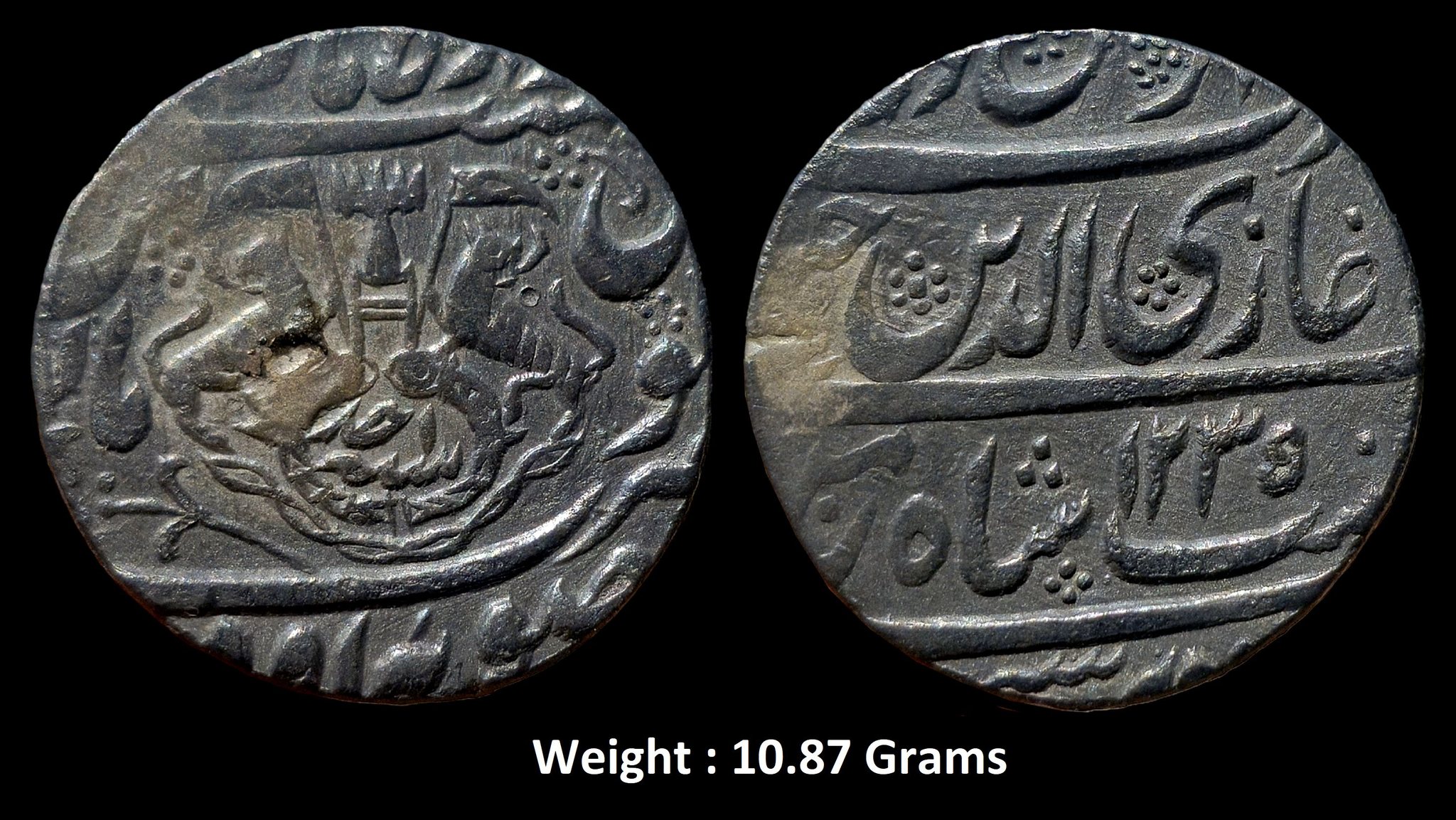 Silver Rupee ; Mint : Subah Awadh Darul Amarat Lakhnau ; 1235 AH ; RY 1 ; Weight : 10.87 Grams ;