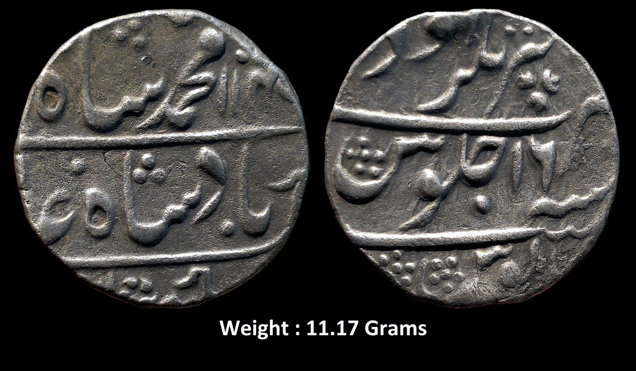 Awadh State ; Scarce Silver Rupee ; Mint : Akhtarnagar Awadh ( On Reverse top ) ; 114X AH / RY 16 ; INO Muhammad Shah ; Weight : 11.17 Grams ;