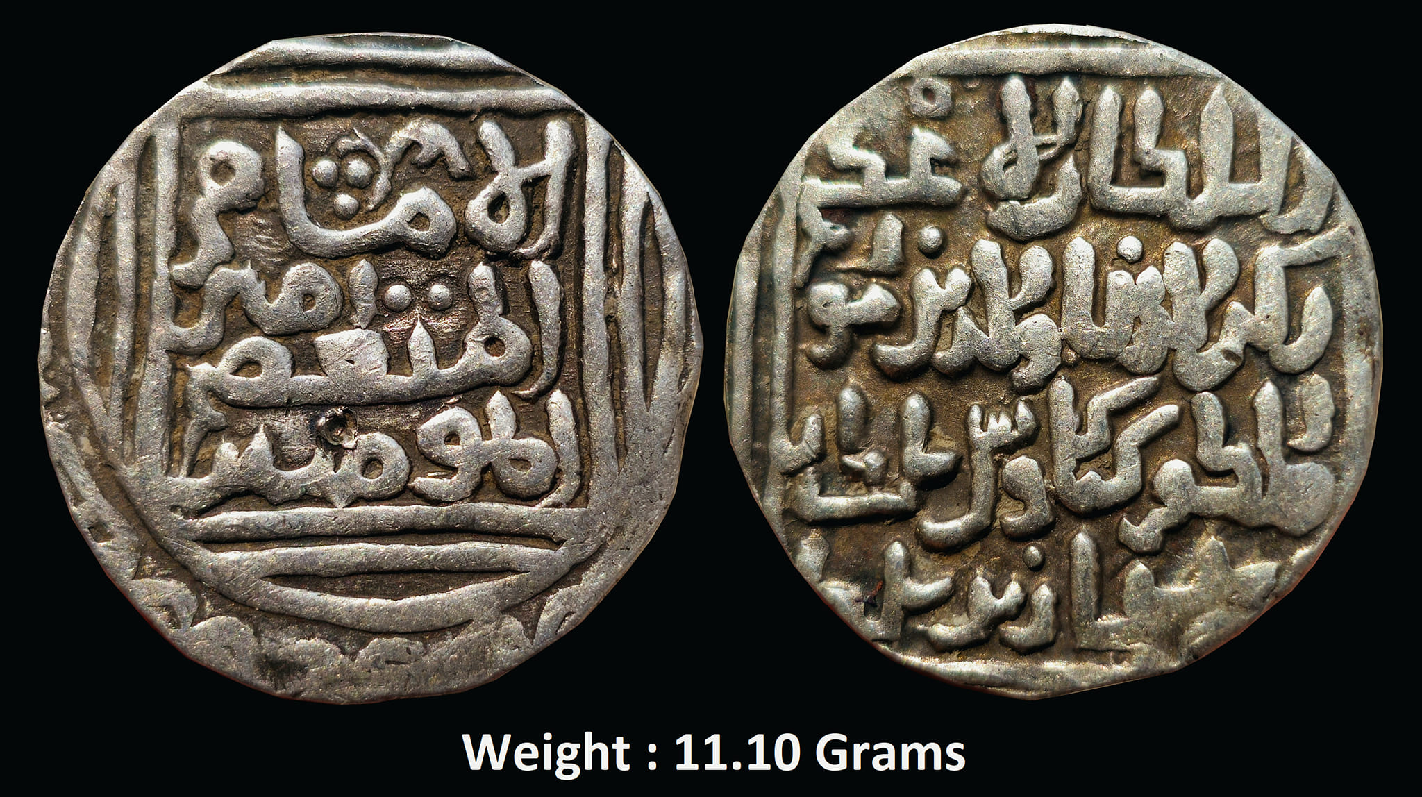 Bengal Sultanate ; Rukn ud-din Kaikaus (AH 689-700/1290-1300 AD), Silver Tanka, Lakhnauti Mint (Off flan), Obv: al-sultan al-azam rukn ud-dunya wa’l din abu’l muzaffar kaikaus al-sultan bin al-sultan bin sultan, Rev: al imam al-musta’asim amir al-mominin within circular square, mint lakhnauti & hijri date in arabic words in margin, Weight : 11.10 Grams (G&G # B89),