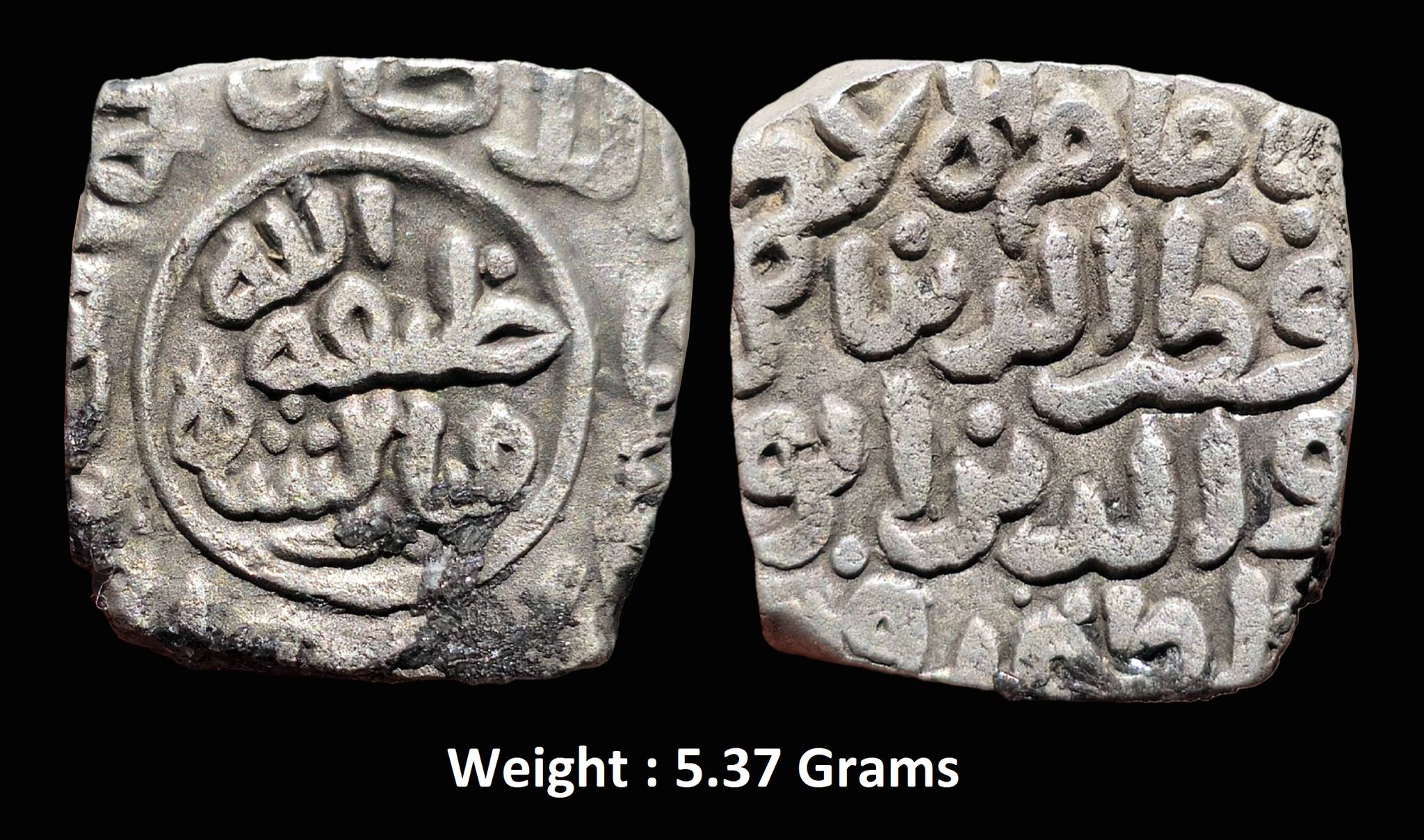 Reverse : ‘Khilafat Allah Mubarak Shah’ written in the centre within the circle, and the legend Al-Sultan Al-Wathiq Billah Amir Al-Muminin ; Weight : 5.37 Grams