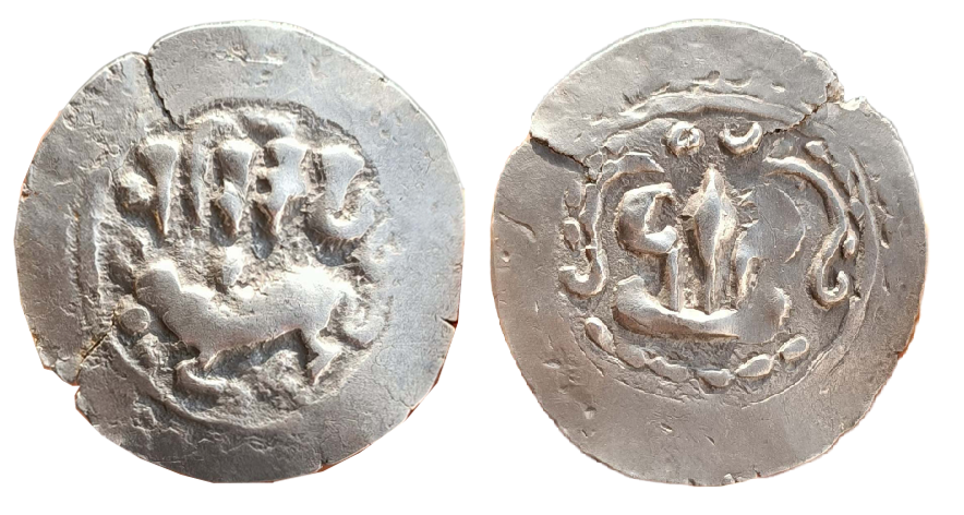 Rev: tripartite symbol with long central shaft crescent on left and sun on right, 5.91g, (S.K.Bose # HD 1.3), “SAVE HERITAGE SAVE COINS”