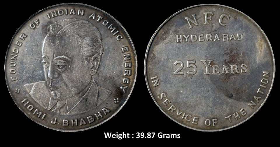 Ex Rare Silver Medal ; NFC ( Nuclear Fuel Complex ) Hyderabad ; 25 years in the service of nation ; Issued in the name of Dr. Homi Jehangir Bhabha (1909–1966), known as the "Father of India's Nuclear Program "