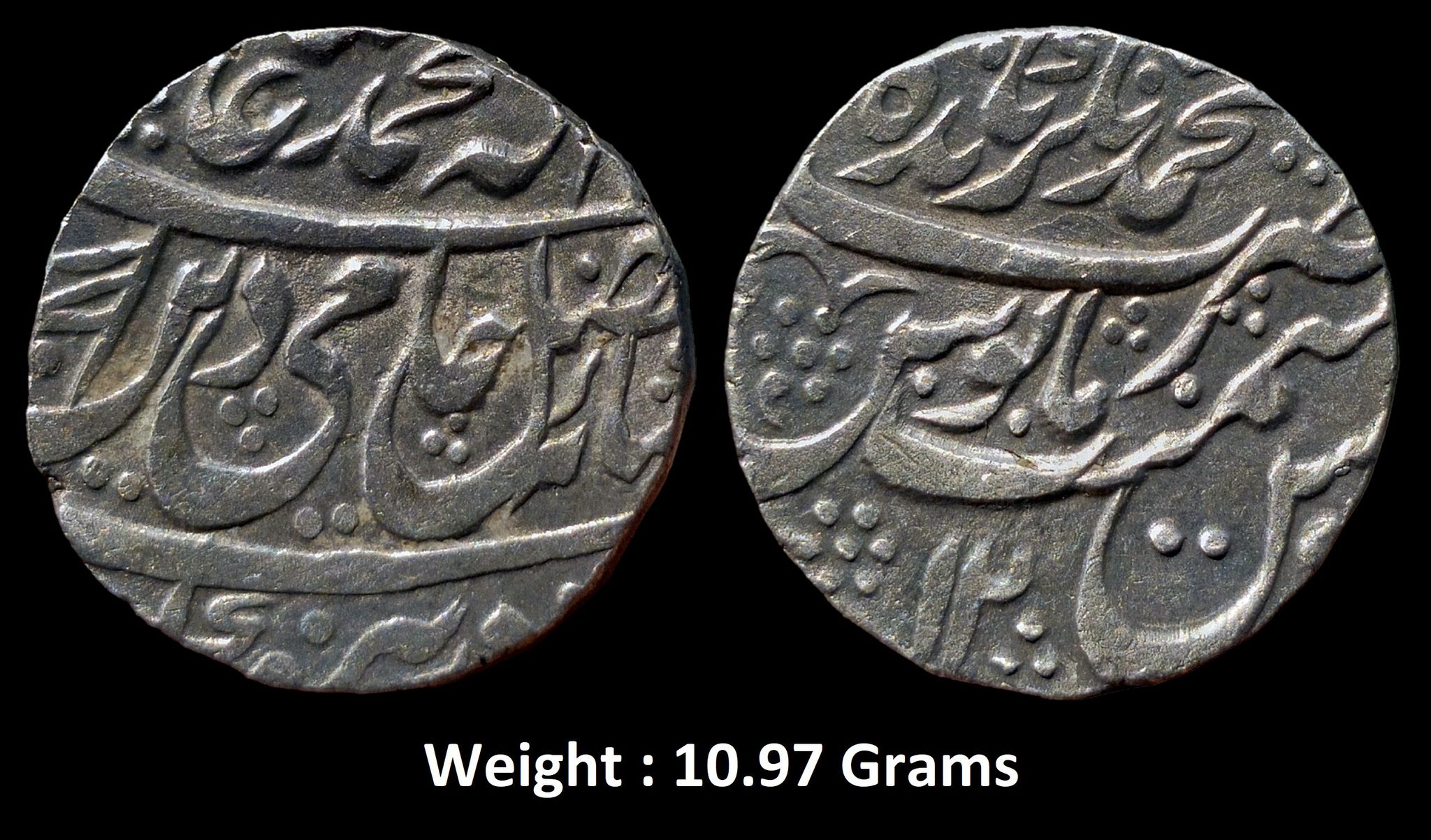 Independent Kingdom ; Rohilkhand ; INO Shah Alam II ; Mint : Muhammadnagar Tanda ( FULL MINT ) ; RY 12 ; RARE Silver Rupee ; Weight : 10.97 Grams ; Note : Flag or Pataka in Noon of Hamideen on obverse ;