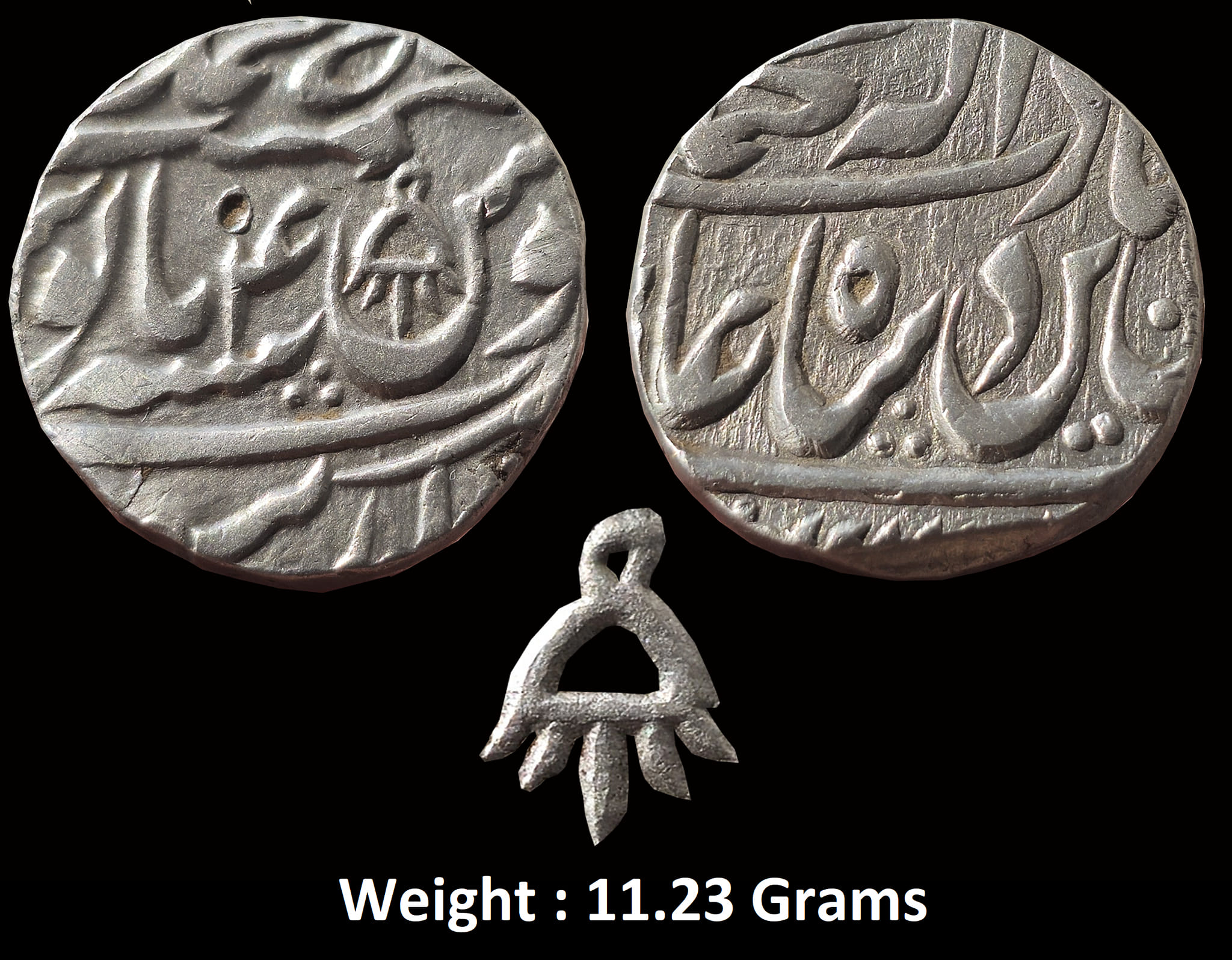 IPS : Awadh, Silver Rupee, Shuja ud Daula (AH 1167-1188/1754-1775 AD), Muhammad Banaras Mint, 4 RY without star near RY, INO Shah Alam II, Umbrella type on Reverse. MKDM 3.56. Very Fine, Very Scarce.