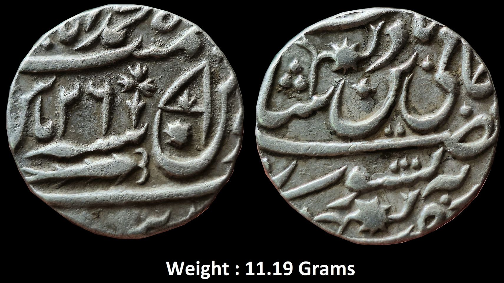 IPS ; Awadh State ; INO Shah Alam II ; Broad Flan Silver Rupee Mint : Mahmudabad Benaras ; RY 26