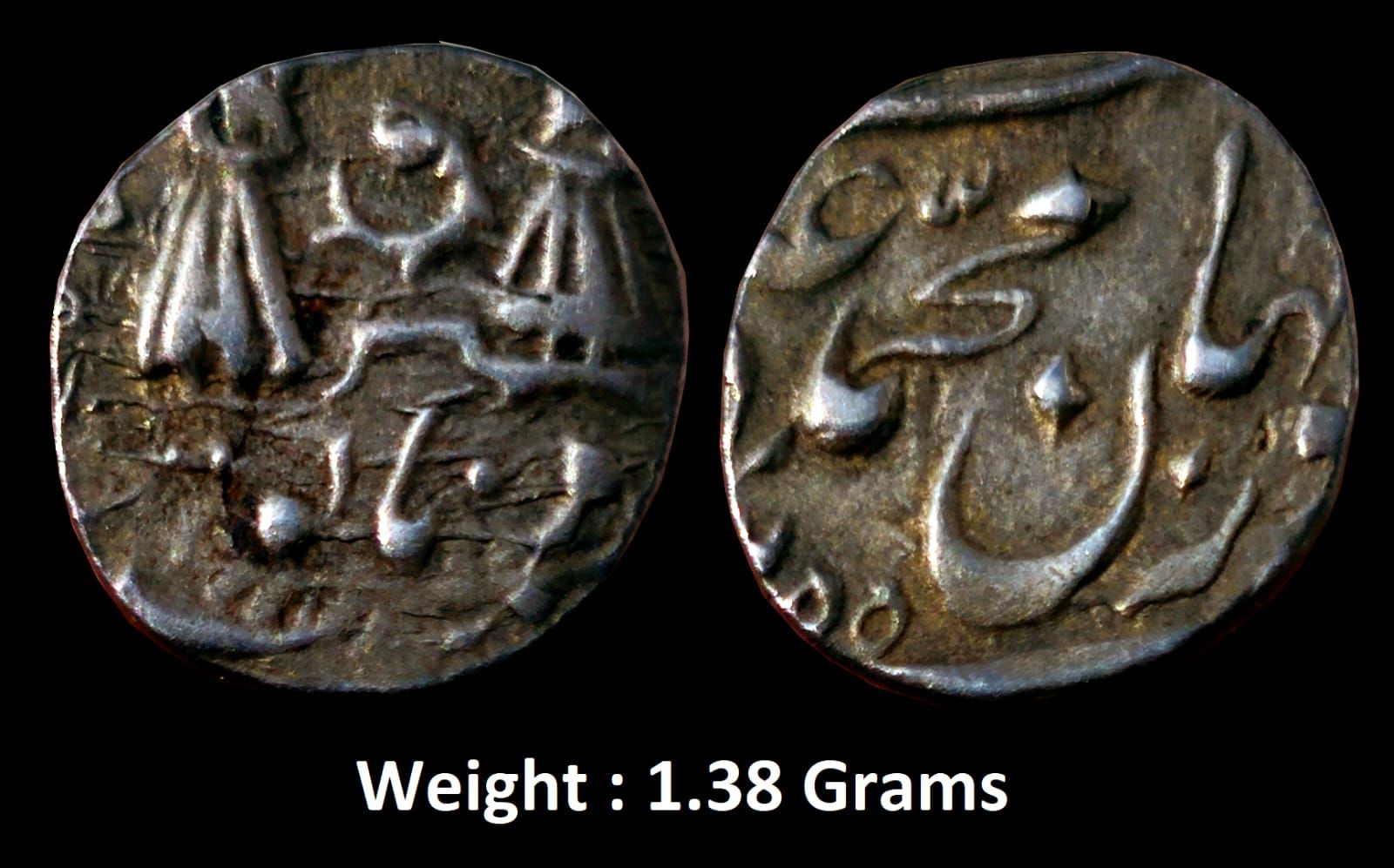 Silver 1/8 Rupee. Obv: inscription muhammad ali shah, Rev: crown and fish flanked by people,(KM # 310), Very Rare.
