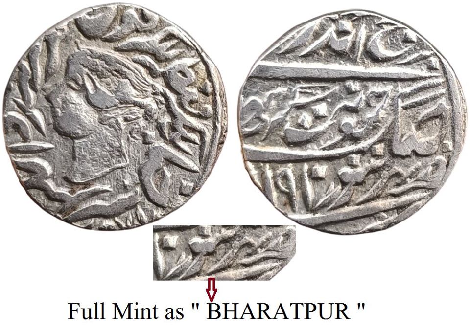 IPS ; Bharatpur State ; RARE Silver Rupee Mint : Bharatpur ; Jaswant Singh ; Portrait Queen Victoria