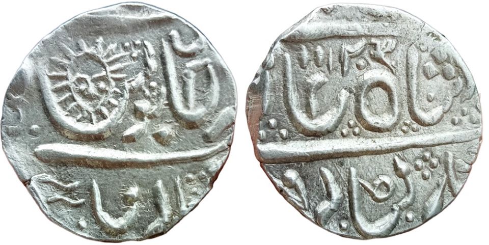 IPS ; Indore State ; Ahalyabai Holkar ; SCARCE Silver Rupee Mint : Malharnagar ; INO Shah Alam II