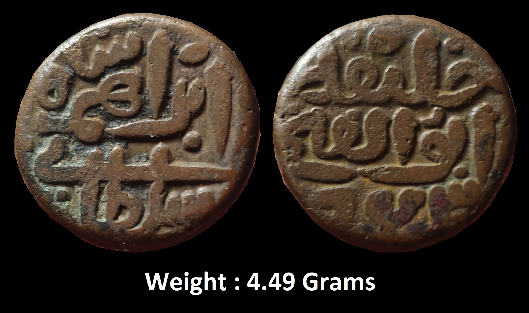 Jaunpur Sultanat , Shams ud-din Ibrahim Shah (AH 804-844/1402-1440 AD), Copper Falus, AH 843, Obv: ibrahim shah sultani,
