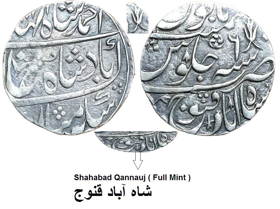 Mughal ; Ahmed Shah Bahadur ; RARE Silver Rupee ; Mint ; Shahabad Qannauj ; ( Full Mint )