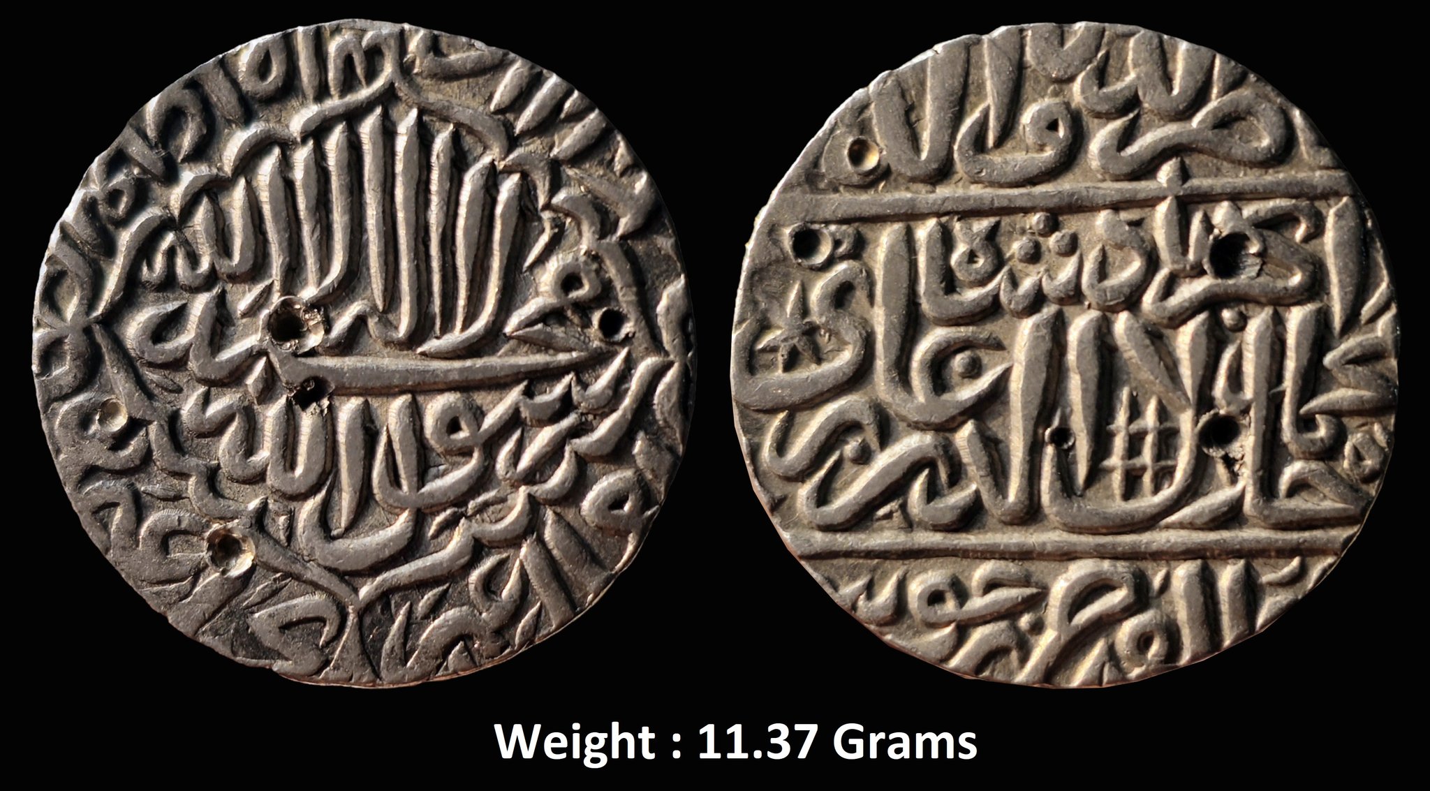 Mughal ; Akbar (AH 963-1014 / 1556-1605 AD) ; Rare Silver Rupee ; Big Flan : 31mm ; Weight : 11.37 Grams ; Dar-ul-khilafat Jaunpur Mint ; Kalima within mihrab-shaped cartouche on obv. (KM # 80.10)