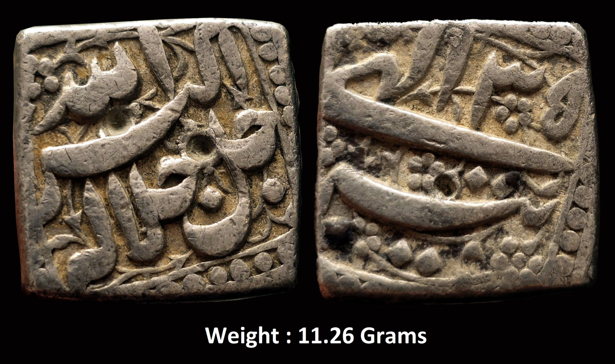 Mughal ; Akbar ; Mintless Type ; Ilahi Month Tir ; Silver Square Rupee ; RY 35 ; Very Scarce