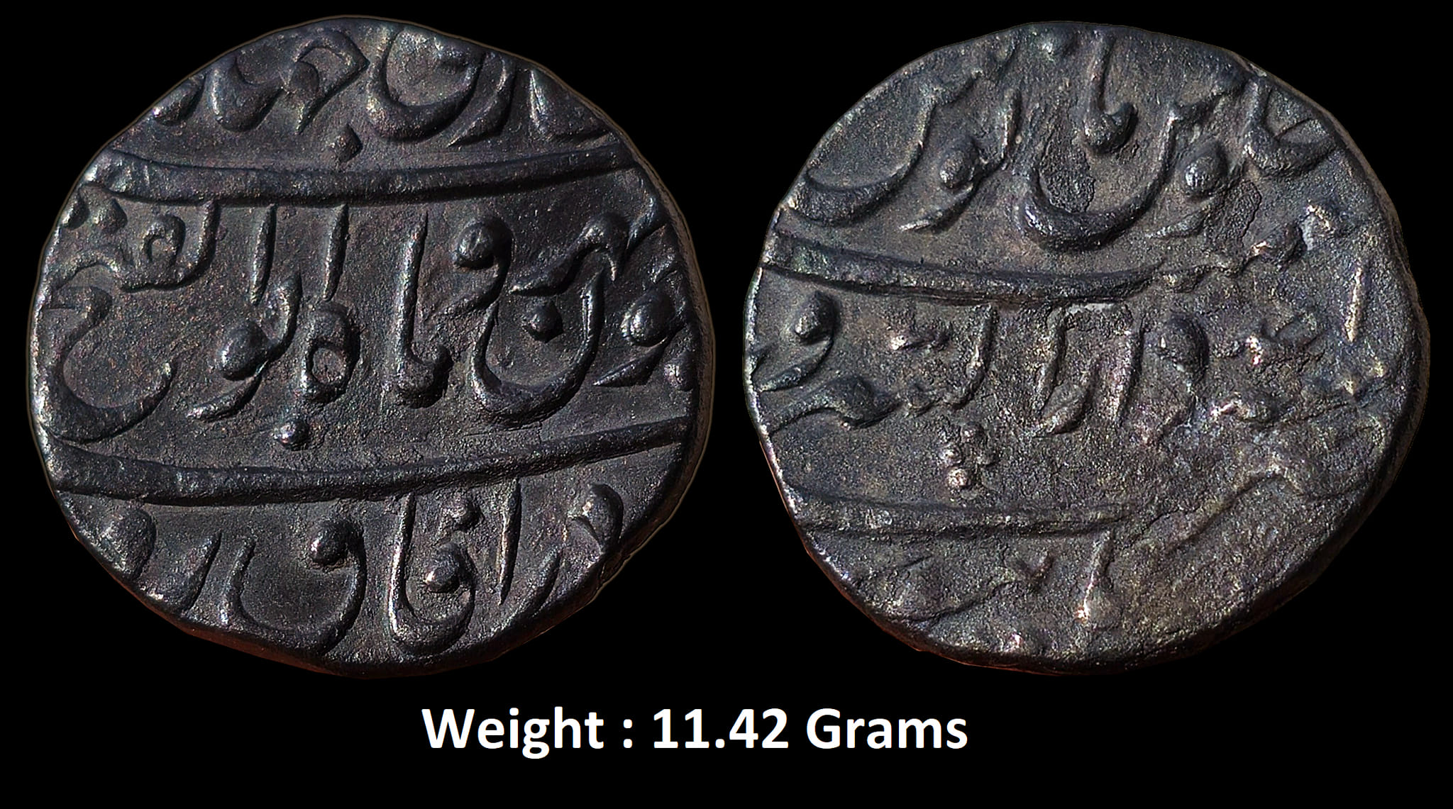 Mughal ; Shah Alam Bahadur ; Silver Rupee Mint : Mustakhir ul Mulk Akbarabad; Weight : 11.36 Grams ; RY ” Ahad “