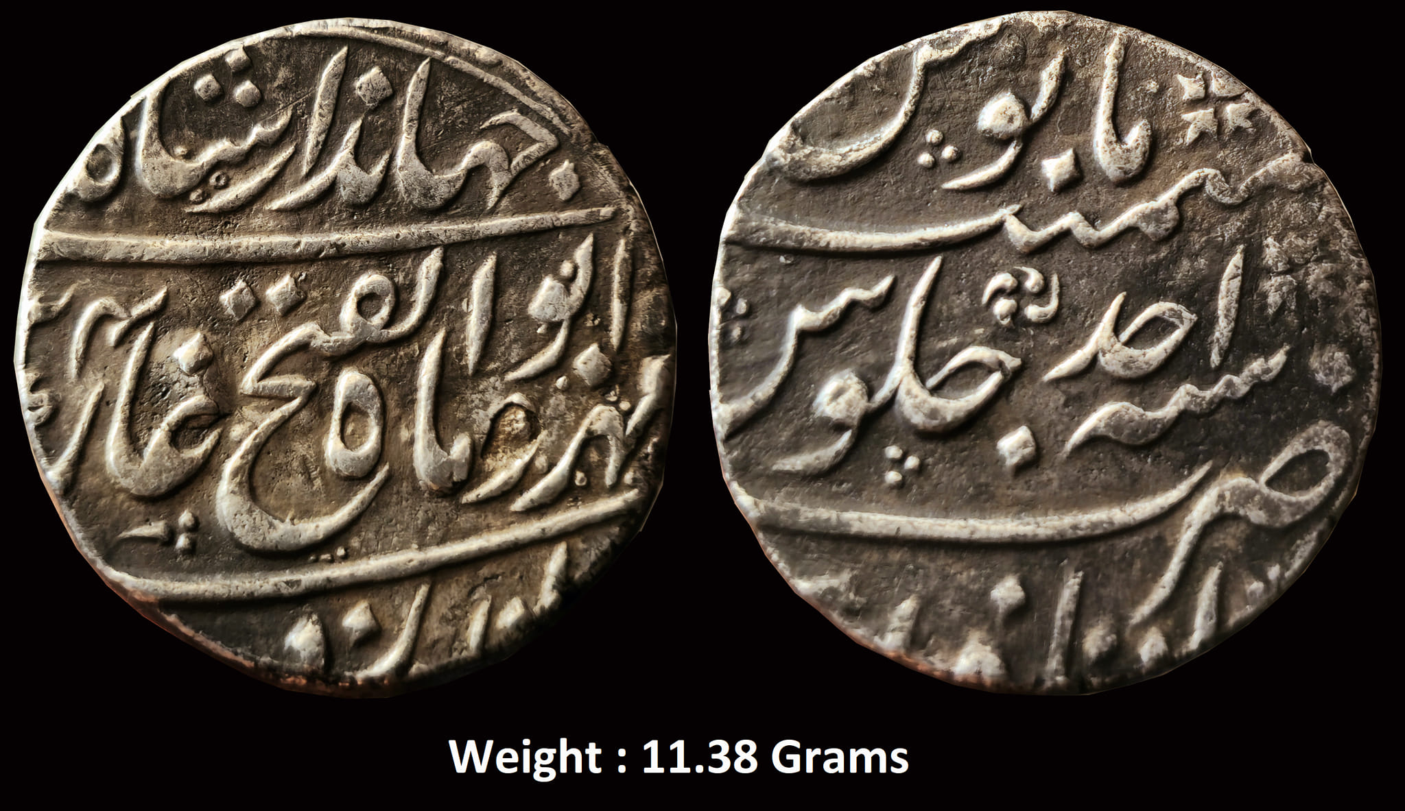 Mughal ; Alamgir II, RARE Large Flan Silver Rupee, Mint : Ahmednagar Farrukhabad Mint, AH 1170/ 4 RY,
