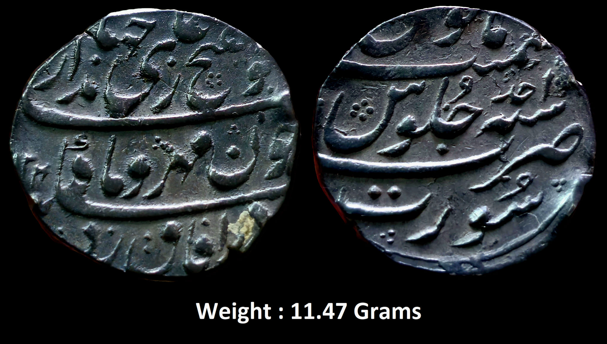 Mughal ; Alamgir II ; Scarce Silver Rupee; Mint : Sahrind ; RY ” Ahad “