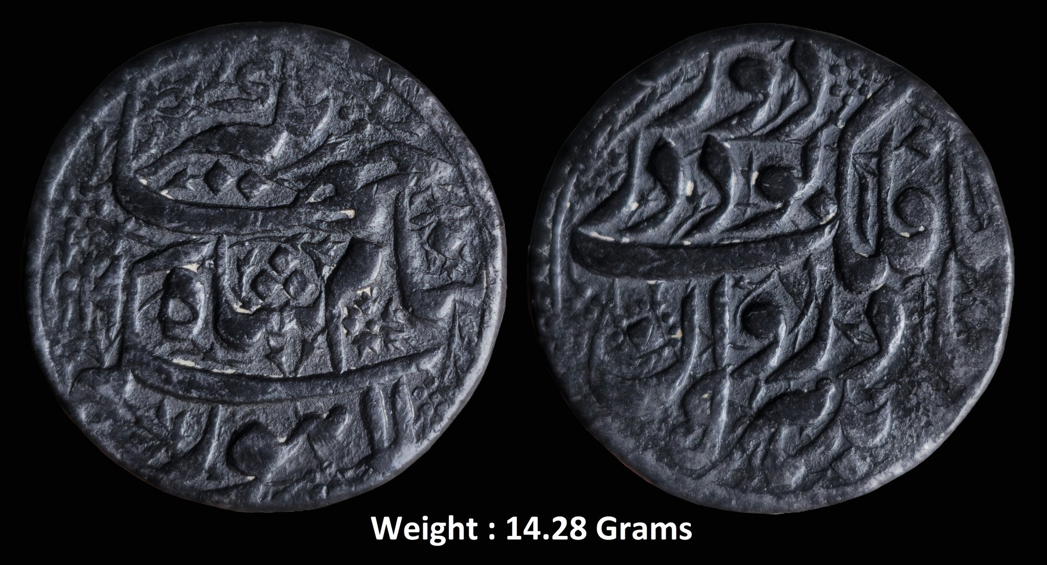 The ‘Ta Falak’ couplet on the coin reads as: