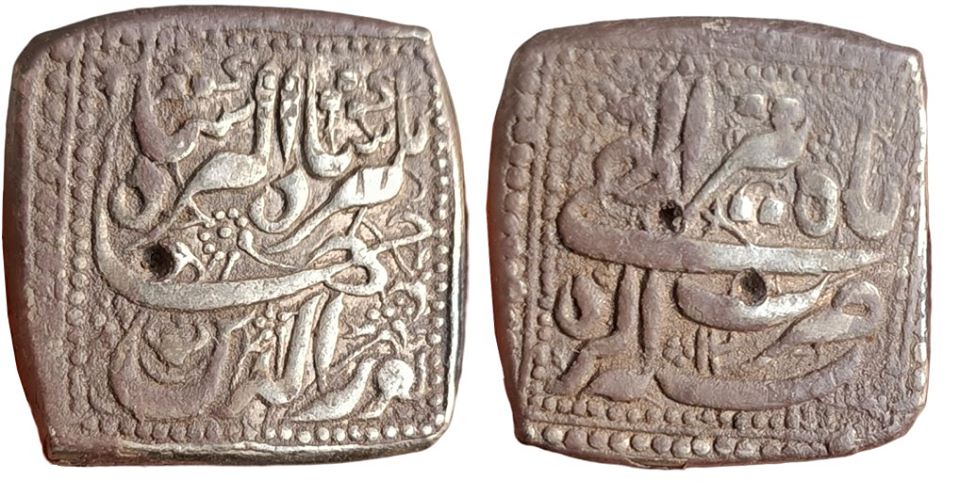 Categories: Jahangir (1605-1627), MUGHAL Tags: Agra Mint, Illahi Month Tir, Jahangir, Mughal Coins, Silver Square Rupee