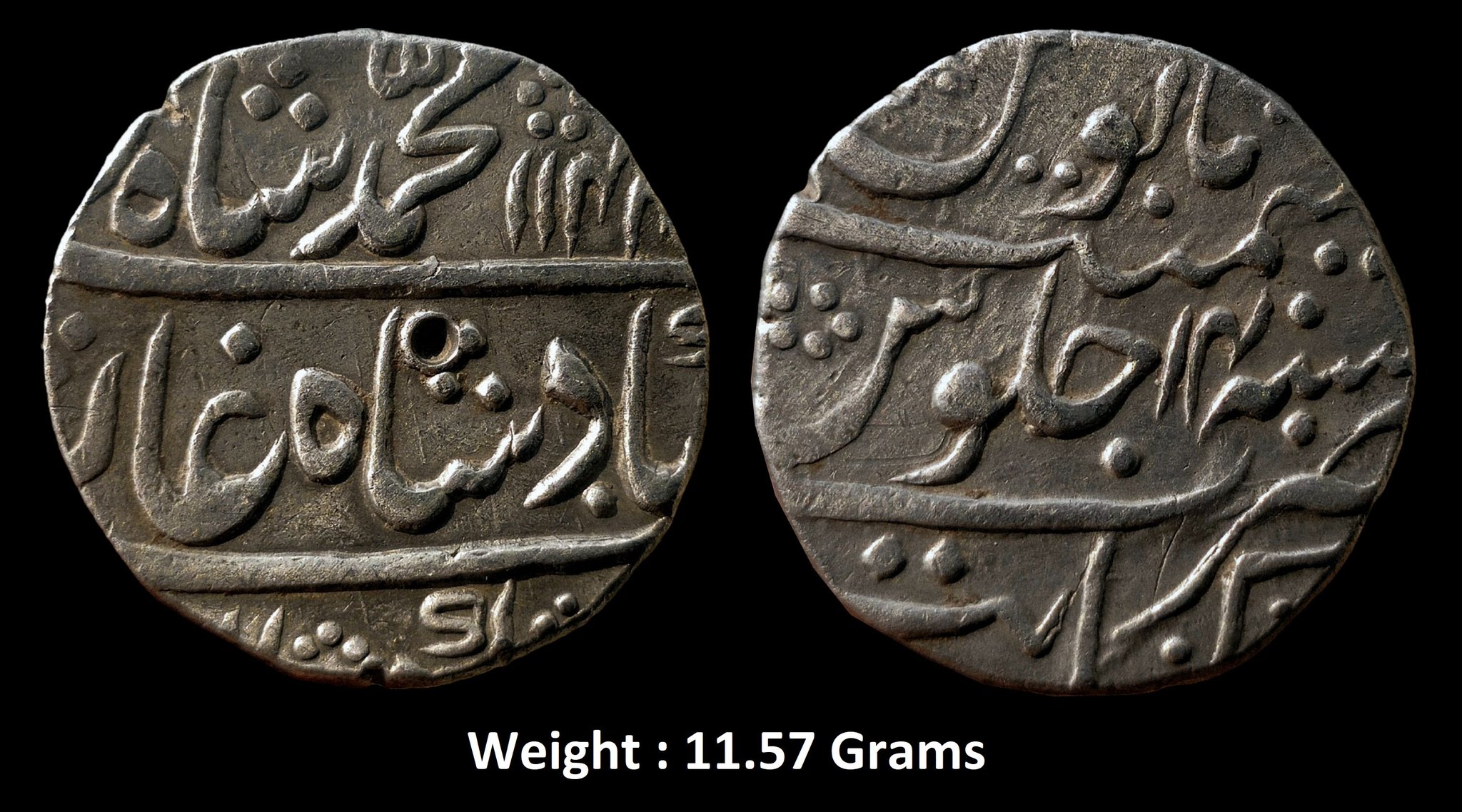 Mughal ; Muhammad Shah ; Scarce Silver Rupee ; Mint : Khambayat ; 1144 AH / RY 14