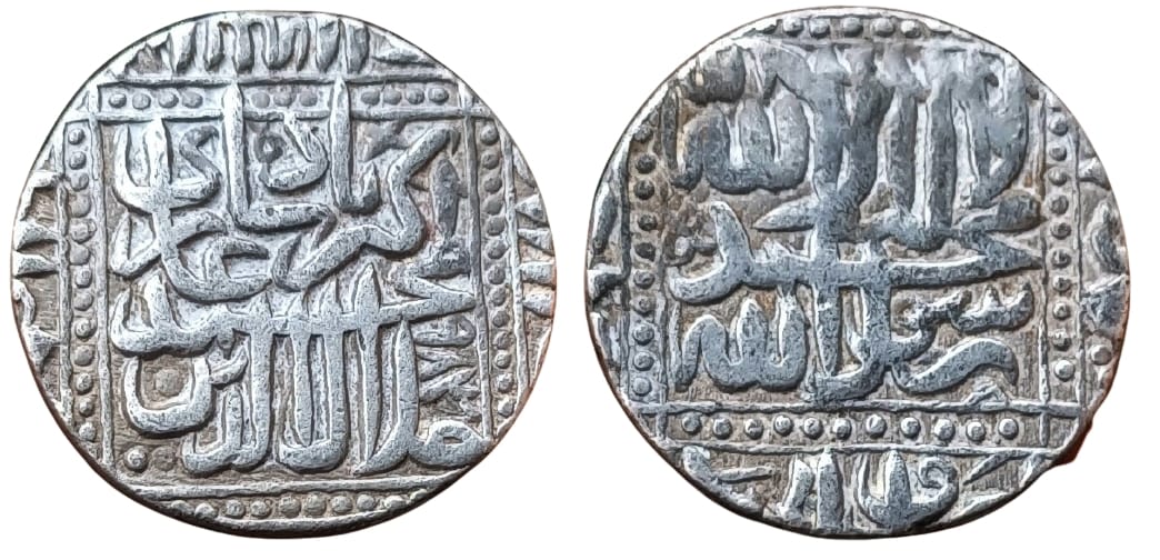 Mughals ; Akbar, Silver Rupee, Mint : Ahmedabad , AH 986, Kalima within dotted square