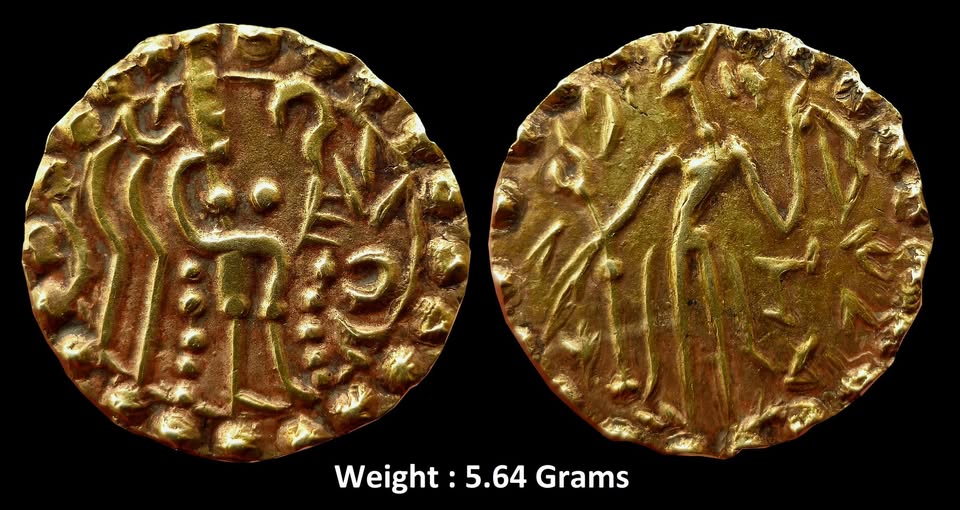 Gold dinar of Rajabhata of Khadga dynasty (c.675-700 AD), ECB SAM16.1,